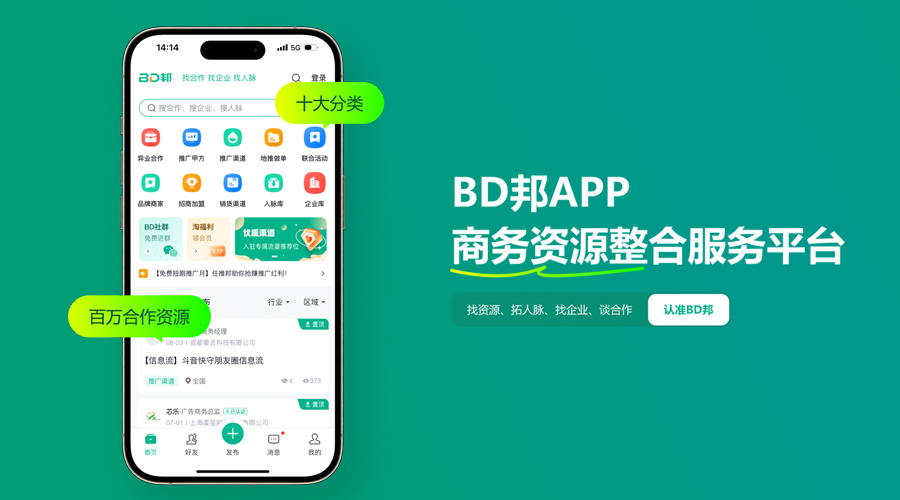 BD邦不仅是商务合作平台,也是高质量推广任务对接中心。平台上有APP拉新、短剧推广、商家合作等一手任务。